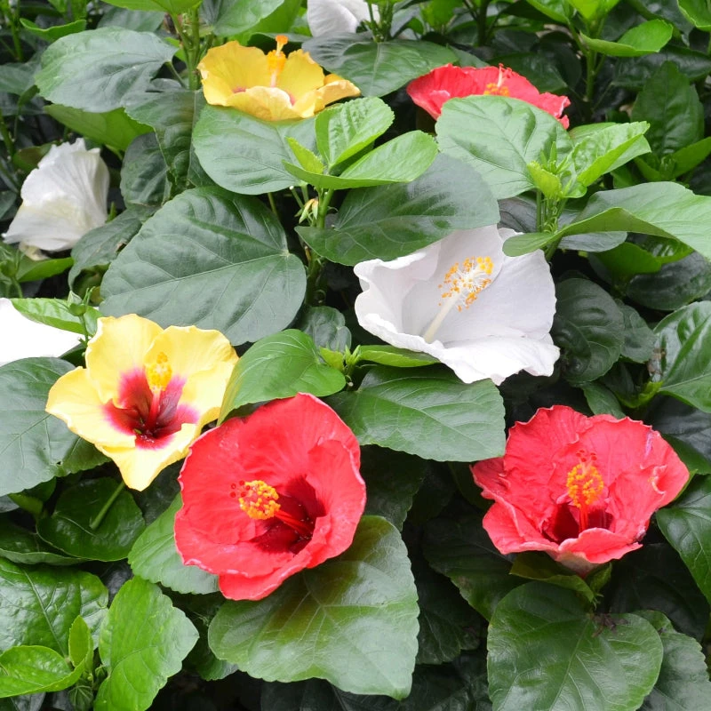 - Oversized red, orange, and yellow tropical flowers bloom nonstop until frost!