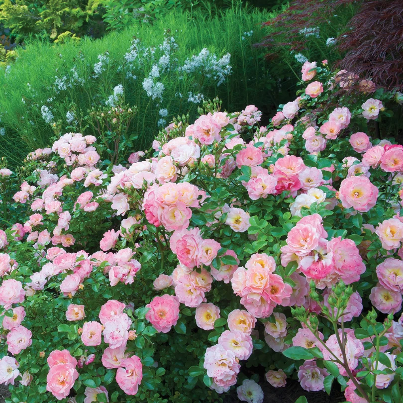 - Ground cover rose, great in mass plantings or spilling out of containers.
