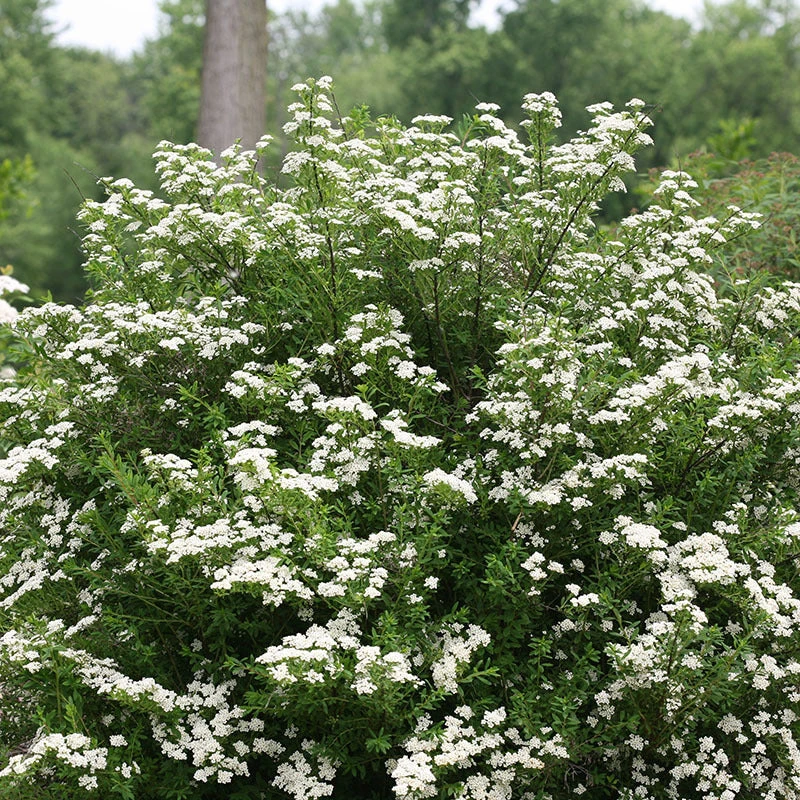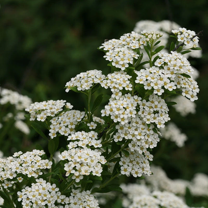 - Explosion of pure white flowers in late spring.